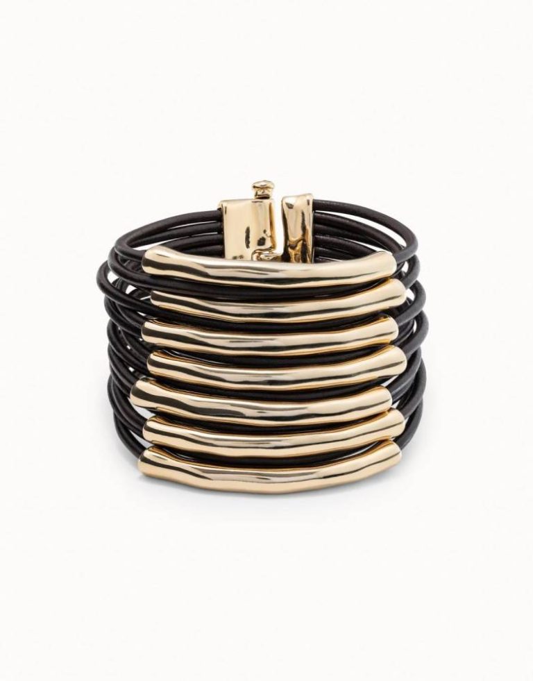 Uno de 50 Gold Plated Leather Wide Bracelet