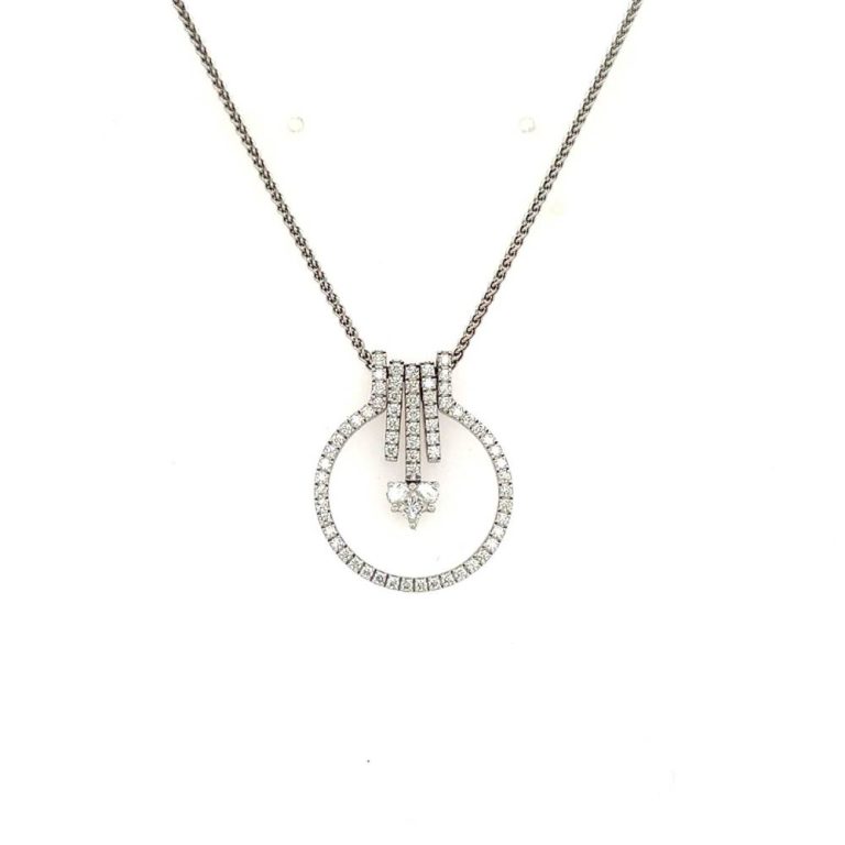 18ct White Gold Heart In Circle Diamond Pendant