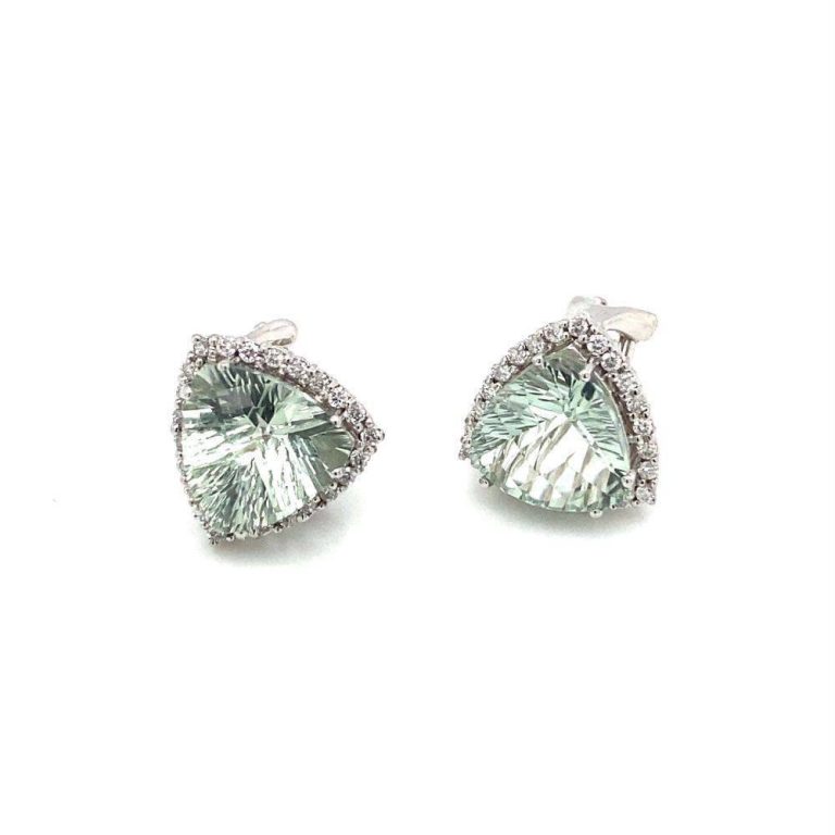 18ct White Gold Green Amethyst & Diamond Earrings