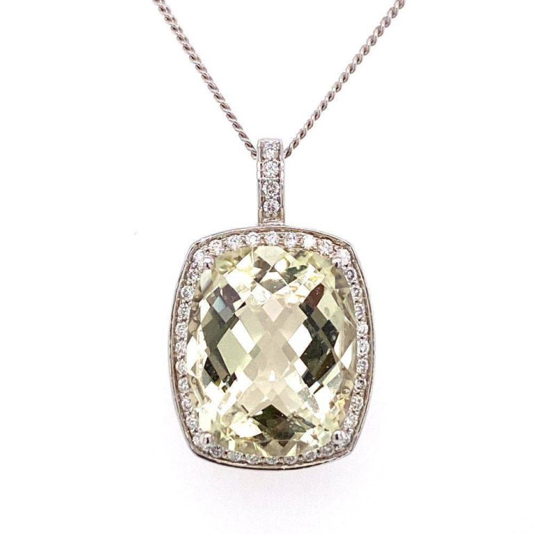 18ct White Gold Lemon Quartz & Diamond Pendant